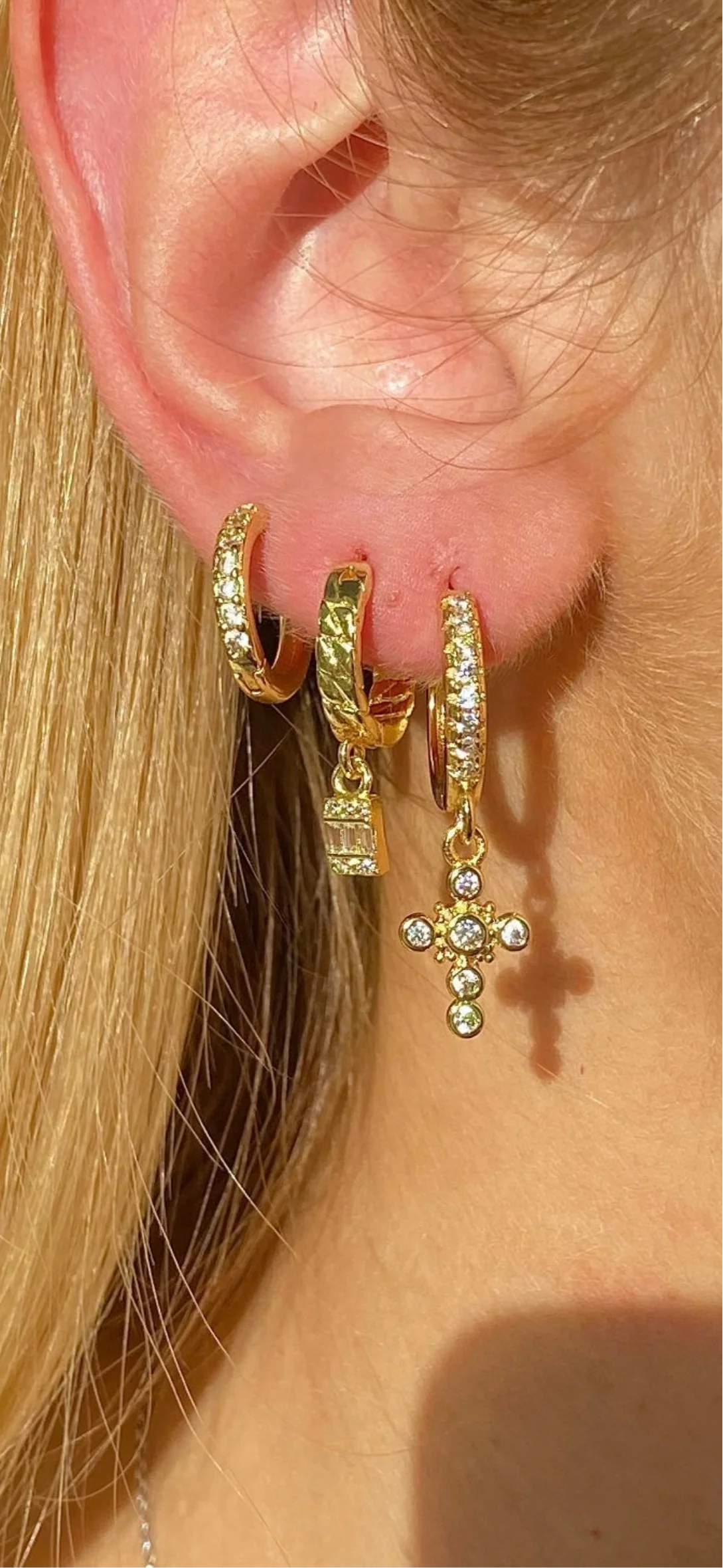 The Gold Crystal Cleo Hoops are designed to add sparkle to your look with their dazzling crystals and sleek gold-plated finish. Perfect for any occasion, these hoops bring a touch of glamour and elegance to your everyday style or special event outfits. Their size makes them ideal for both subtle and statement looks, offering versatility and chic appeal.