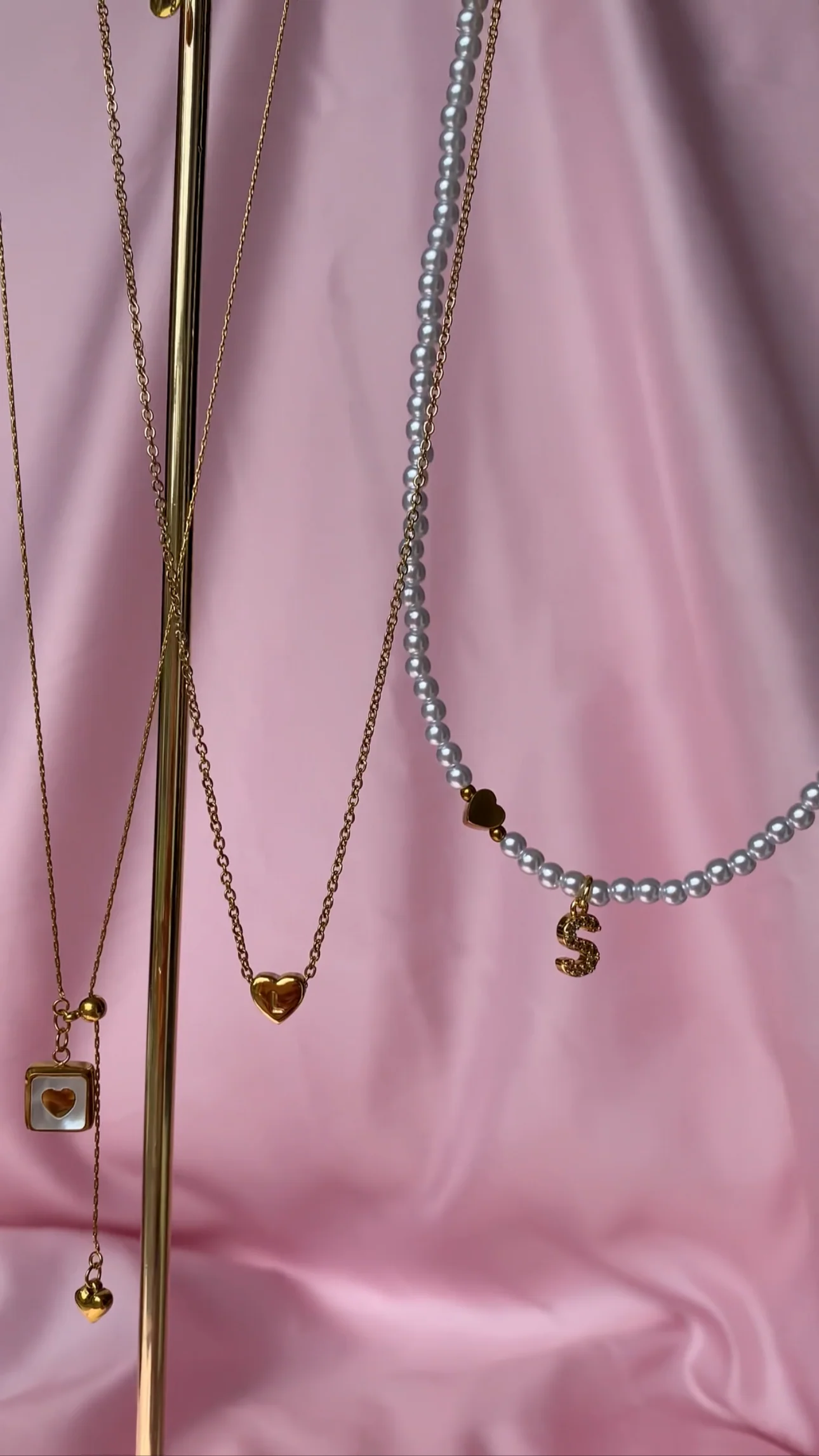 Gold Pearl and Heart Initial Necklace