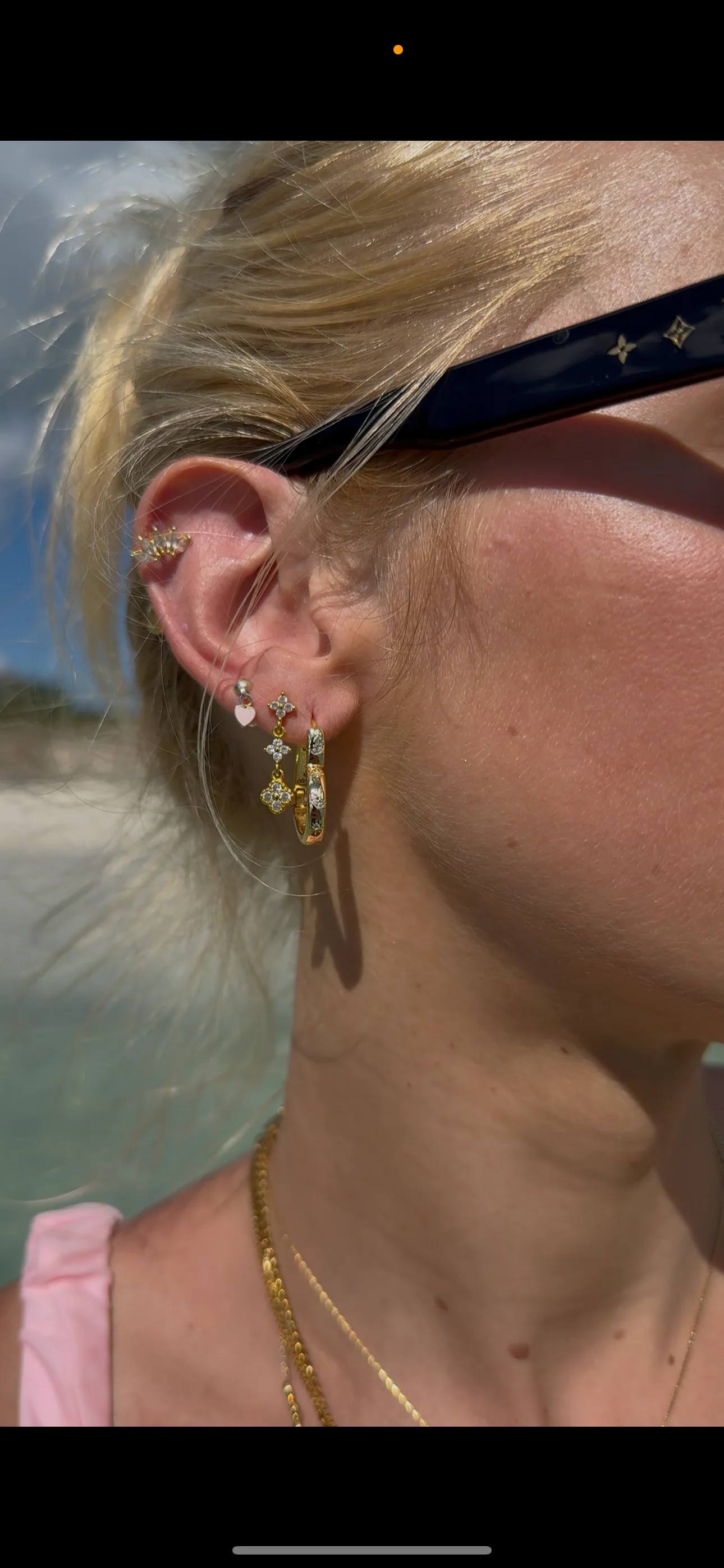 Add a whimsical touch to your jewelry collection with the Gold Triple Flower Dangly Studs! These delightful earrings feature a beautiful design with three dangling flowers, perfect for adding charm and elegance to any outfit. Ideal for both casual and special occasions, they make a lovely statement piece.