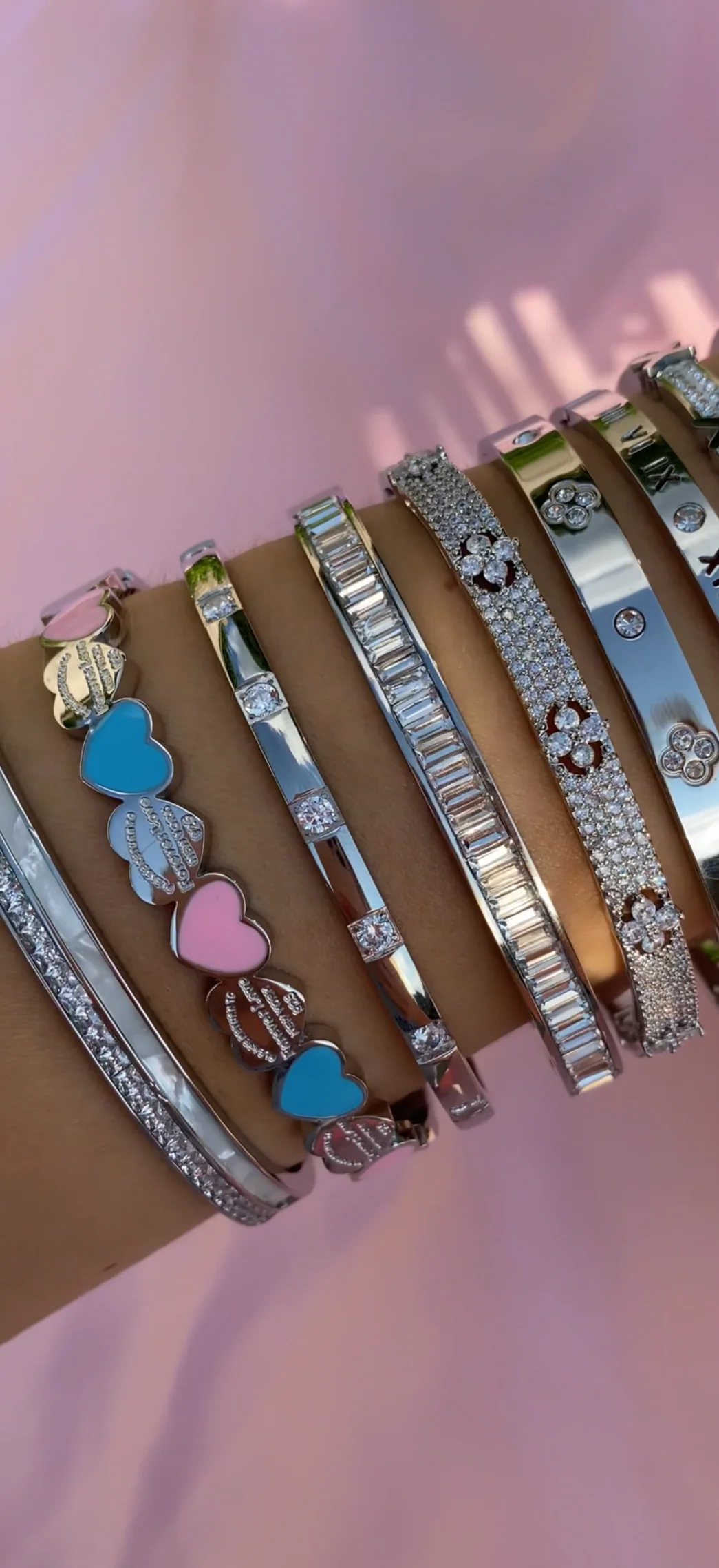 - Baby pink, white and turquoise hearts