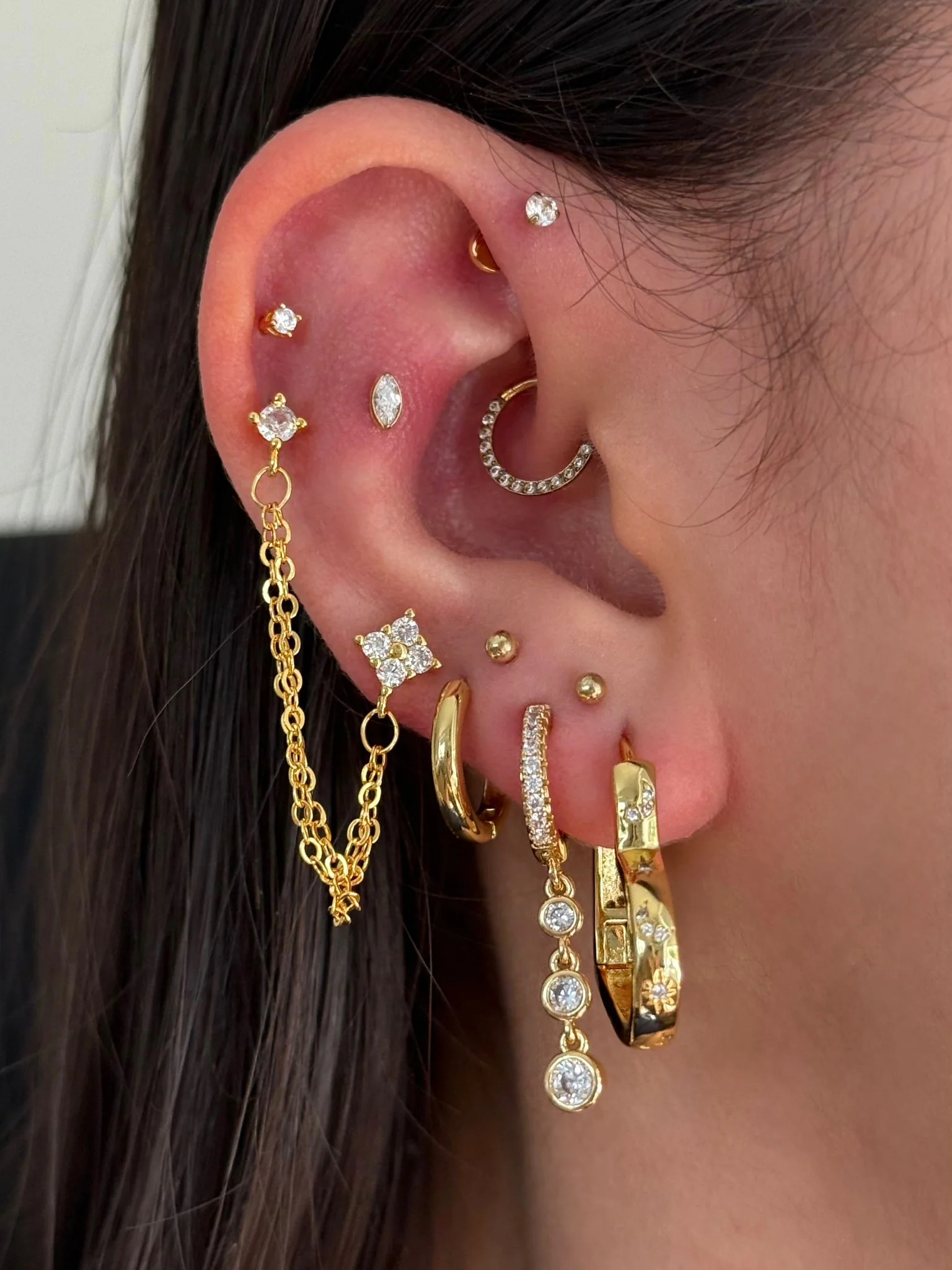Level up your ear game with the Silver Double Chain Studs! These edgy yet elegant studs feature two sleek silver chains connecting each earring for a bold, modern look. Perfect for adding a bit of attitude to any outfit, these studs are versatile enough to rock from day to night. Whether you're dressing up or keeping it casual, these earrings will instantly elevate your style with a touch of sophistication.